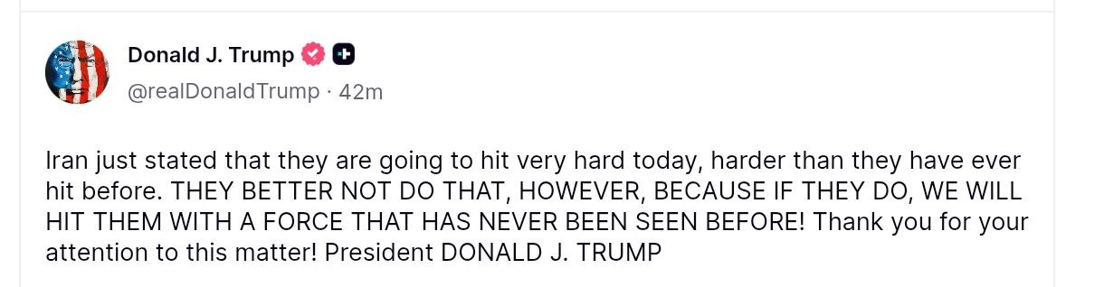 Президент США в ответ заявил, что Иран "собирается нанести удар сильнее, чем когда-либо прежде".