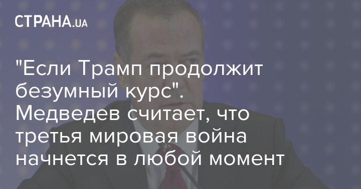 "Если Трамп продолжит свой безумный курс по преступной смене политических режимов, она (третья мировая война - Ред.) несомненно начнётся. И триггером может стать любое событие. Любое… Это (война в Иране - Ред.) война США и их союзников за сохранение глобального доминирования. Свиньи не хотят расставаться с корытом", - сказал Медведев.