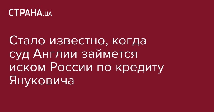 Высокий суд Англии приступит к рассмотрению иска Российской Федерации к Украине по еврооблигационному долгу на $3 млрд, так называемому "кредиту Януковича", 17 января в 10:30 по лондонскому времени (12:30 по Киеву).