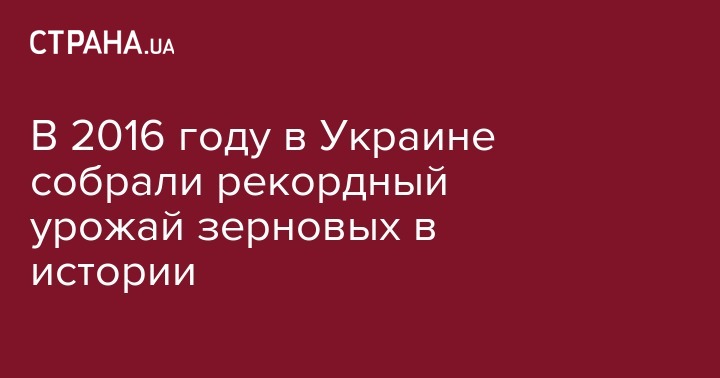 В 2016 году в Украине собрали рекордный урожай зерновых в истории