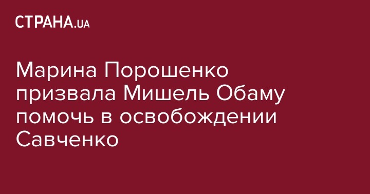 Об этом сообщает пресс-служба главы государства. Марина Порошенко написала письмо первой леди США: «Уважаемая Мишель, с надеждой ожидаю, что Ваш голос не только присоединится к международной кампании по освобождению и возвращению домой Надежды Савченко, но и даст новый толчок процессу освобождения остальных украинских граждан, включая Олега Сенцова, Александра Кольченко, Геннадия Афанасьева, Ахтема Чийгоза и других заложников российской карательной машины».
