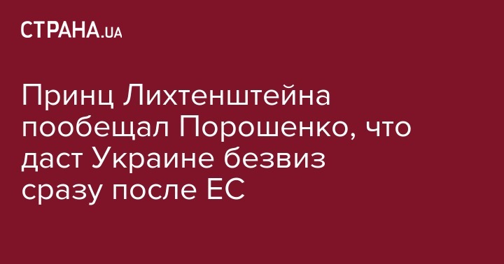 "Наследный принц Лихтенштейна сообщил, что его страна введет безвизовый режим для украинских граждан сразу после аналогичного решения Европейского Союза", - говорится в сообщении.