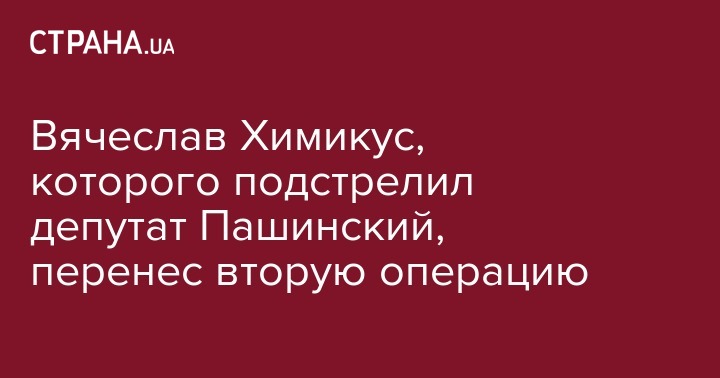 Вячеслав Химикус, которого в новогоднюю ночь подстрелил народный депутат от "Народного фронта" Сергей Пашинский, перенес вторую операцию на ноге. Об этом в Facebook сообщила его адвокат Марина Паринова.
