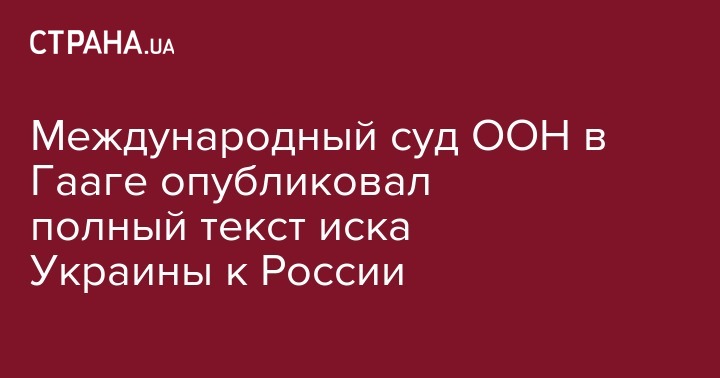 Международный суд ООН (Гаага) обнародовал иск Украины против России, поданный 16 января. Текст документа на 45 страницах опубликовано на сайте суда.