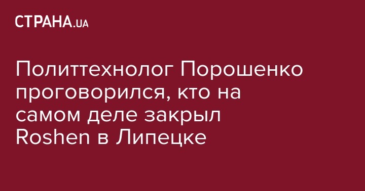 Политтехнолог Порошенко проговорился, кто на самом деле закрыл Roshen в Липецке