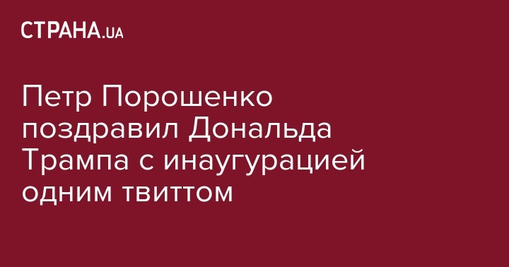 Президент Петр Порошенко поздравил Дональда Трампа с инаугурацией в качестве 45-го президента США. Слова с поздравлением он написал в своей Twitter.