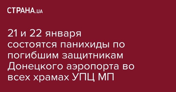 В эти выходные, 21 и 22 января, во всех храмах Украинской Православной церкви Московского патриархата состоятся панихиды в связи с Днем памяти защитников Донецкого аэропорта. Соответствующее письмо было направлено во все епархии по благословению предстоятеля УПЦ Блаженнейшего Митрополита Онуфрия, сообщает Центр информации УПЦ.
