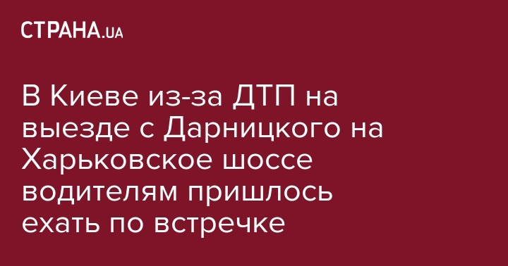 "ДТП в Киеве на выезде с Дарницкого на Харьковское шоссе. Перекрыли всю дорогу. Все объезжают по встречной полосе", - говорится в сообщении со ссылкой на очевидцев.