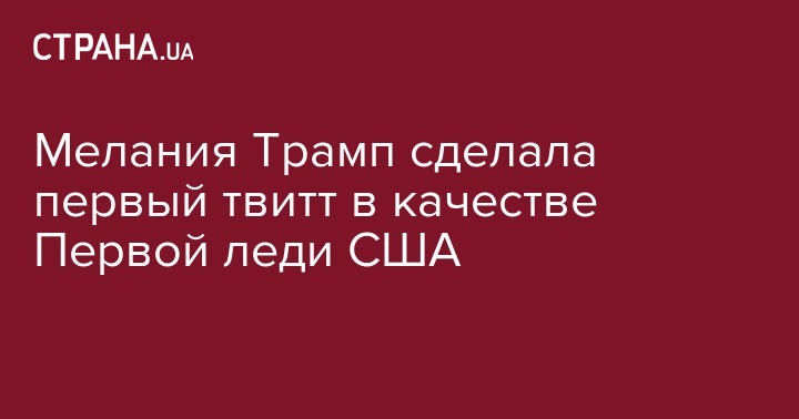 Супруга президента США Мелания Трамп опубликовала свое первое сообщение в качестве первой леди Соединенных Штатов на официальном аккаунте в Twitter.
