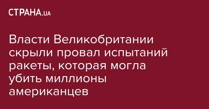 Власти Великобритании скрыли провал испытаний ракеты, которая могла убить миллионы американцев