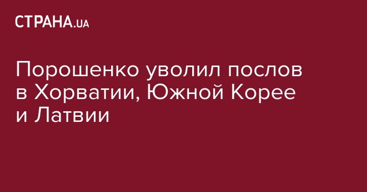 Президент Украины Петр Порошенко освободил Александра Левченко с должности посла Украины в Хорватии, Василия Мармазова – с должности посла Украины в Республике Корея. Также был уволен Евгений Перебийнос с должности посла Украины в Латвии, однако позже президент назначил его послом в Чехии. Об этом сообщается на официальном сайте главы государства.