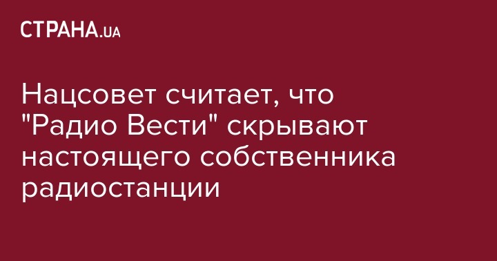 Национальный совет по вопросам телевидения и радиовещания назвал информацию о бенефициарах "Радио Вести" неубедительной. Об этом сообщает "Украинская Правда".