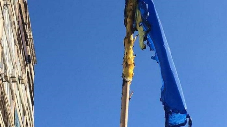 В Кривом Роге вандалы повторно сожгли флаг на стеле героям АТО