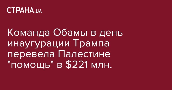 Команда Обамы в день инаугурации Трампа перевела Палестине "помощь" в $221 млн.