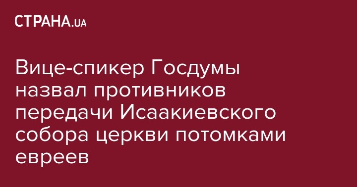 Вице-спикер Госдумы назвал противников передачи Исаакиевского собора церкви потомками евреев