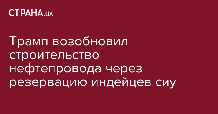 Президент США Дональд Трамп подписал указ о строительстве нефтепровода "Дакота Эксесс Пайплайн", который пройдет через территорию индейской резервации Стэндин-Рок (штат Северная Дакота). Об этом сообщается на сайте Белого дома.