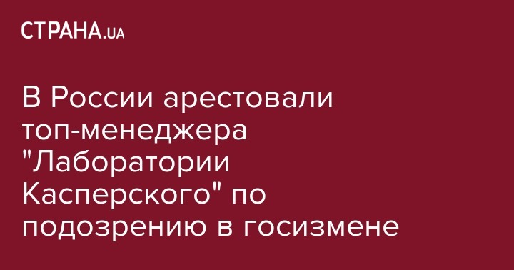 В России арестовали топ-менеджера "Лаборатории Касперского" по подозрению в госизмене