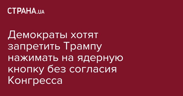 В Конгресс США внесли законопроект, который предлагает запретить президенту единолично принимать решение о нанесении ядерного удара без согласования с Конгрессом. Об этом сообщает "Интерфакс".
