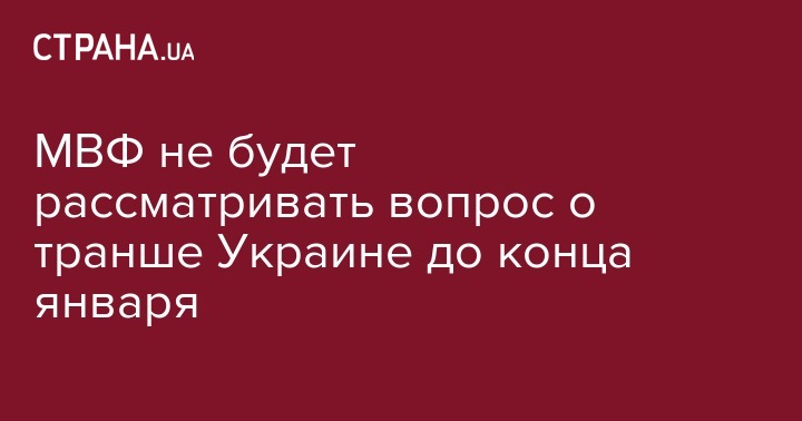 Международный валютный фонд в январе не будет рассматривать вопрос выделения транша Украине. Об этом сообщает УНН.