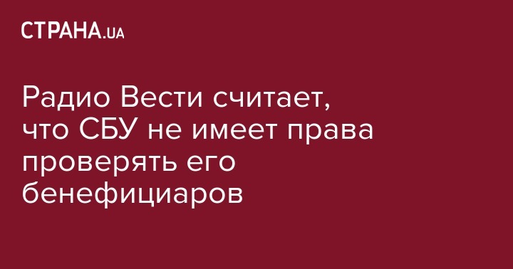 Радио Вести считает, что СБУ не имеет права проверять его бенефициаров