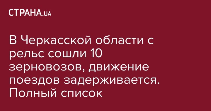 Рано утром 26 января на станции Каменка "Одесской железной дороги" с подъездного пути ООО Каменский элеватор сошли десять зерновозов. В результате движение 10 поездов задерживается. Об этом сообщается на сайте Укрзализницы.