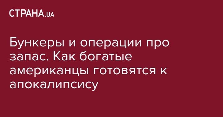Богатые американцы активно готовятся к концу цивилизации: обустраивают бункеры, скупают золотые монеты, землю в Новой Зеландии и делают себе операции "про запас".  Об историях таких небедных людей, которых в США уже немало, рассказала The New Yorker.