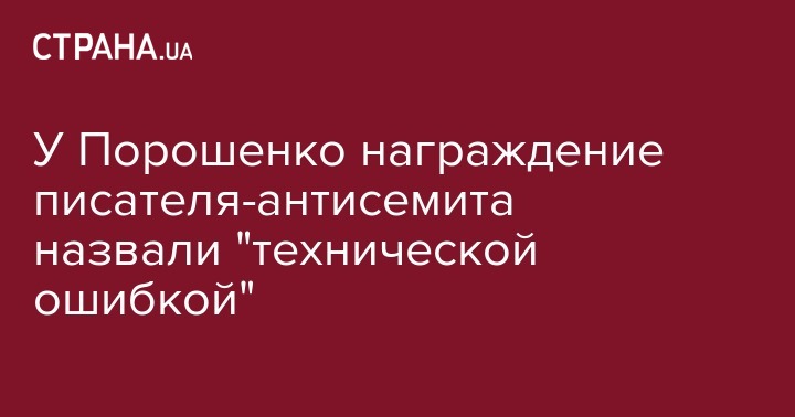 У Порошенко награждение писателя-антисемита назвали "технической ошибкой"