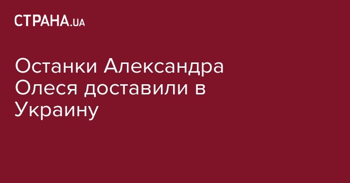 Утром 27 января в международный аэропорт "Борисполь" из Чехии прибыл прах украинского писателя Александра Олеся и его жены. Об этом сообщает УНН.