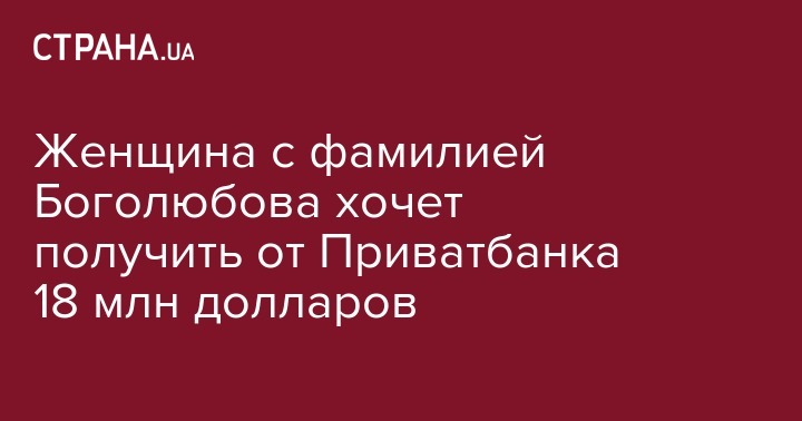 Женщина с фамилией Боголюбова хочет получить от Приватбанка 18 млн долларов