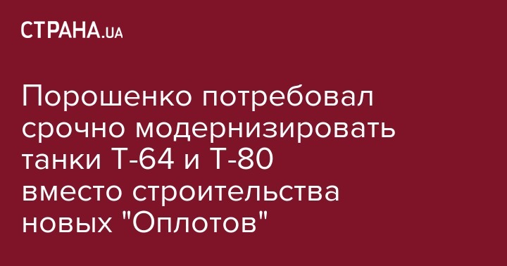 Президент Украины Петр Порошенко на заседании Совета национальной безопасности отметил необходимость срочно модернизировать танки Т-64 и Т-80, передает сайт Главы государства.