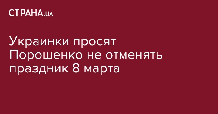 На сайте президента Петра Порошенко появилась петиция с требованием сохранить в Украине празднование Международного женского дня - 8 марта. Документ был зарегистрирован на сайте петиций президенту Украины 27 января.