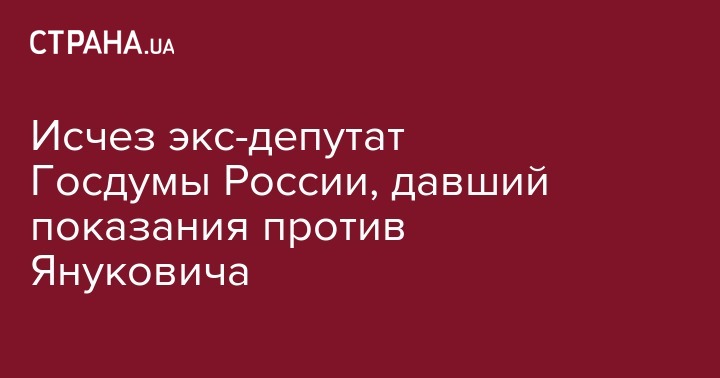 Исчез экс-депутат Госдумы России, давший показания против Януковича