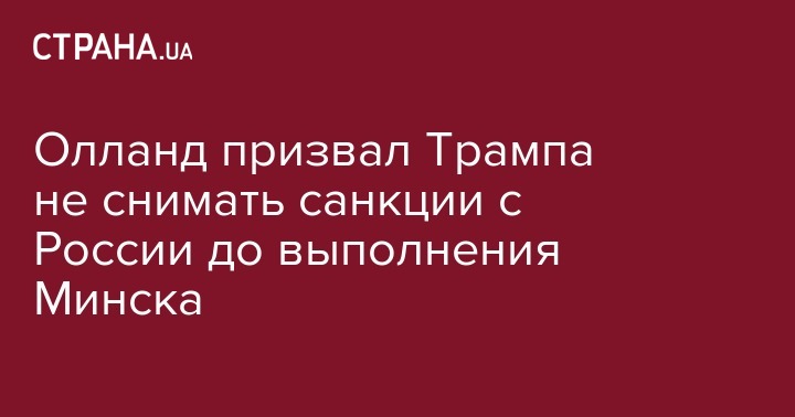 В субботу, 28 января, президент Франции Франсуа Олланд в телефонном разговоре призвал Дональда Трампа не снимать санкции с России до выполнения Минских соглашений. Об этом сообщает Deutsche Welle.