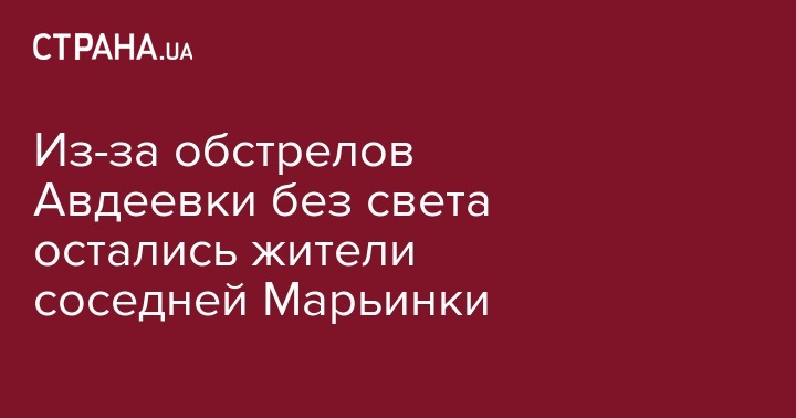 В следствие боев в Авдеевке без электроснабжения остались жители прифронтовой Марьинки. Об этом сказал начальник ГУ ЧП Донецкой области Вячеслав Аброськин, сообщает пресс-служба полиции области.