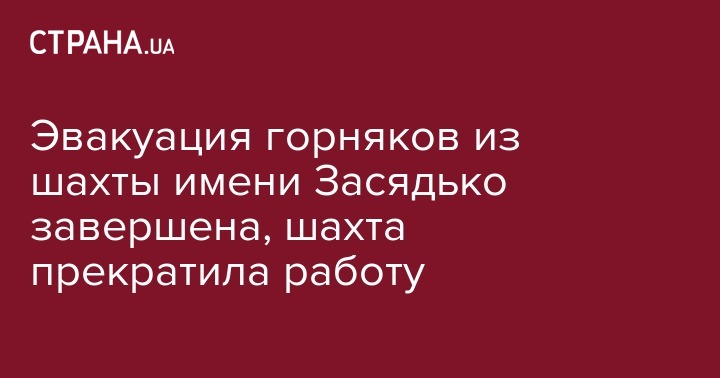 Эвакуация горняков из шахты имени Засядько завершена, шахта прекратила работу
