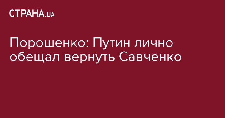 Президент Петр Порошенко на своей официальной странице в Facebook написал о том, что его российский коллега, Владимир Путин, обещал ему отпустить Надежду Савченко.