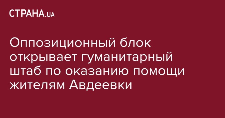 "Третьи сутки под Авдеевкой идут тяжелые бои. Гибнут мирные граждане. Тысячи жителей Авдеевки остались без тепла, электричества, воды и продуктов питания. Оппозиционный блок открывает работу гуманитарного штаба по оказанию помощи городу, оказавшемуся на грани гуманитарной и техногенной катастрофы, - говорится в заявлении партии. - Уже созданы штабы по оказанию помощи жителям Авдеевки на предприятиях Запорожья, Кривого Рога и Мариуполя, входящих в Группу Метинвест. Мы поддерживаем и присоединяемся к этой инициативе. Штаб гуманитарный помощи Оппозиционного блока продолжит свою работу столько сколько будет необходимо для восстановления нормального жизнеобеспечения города и окрестностей".