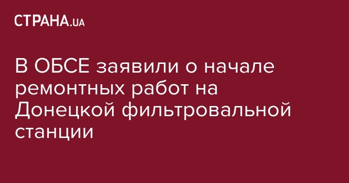 Донецкую фильтровальную станцию начали восстанавливать. Об этом сообщил первый заместитель главы Специальной мониторинговой миссии Александр Хуг, передает пресс-служба СММ ОБСЕ в Twitter.