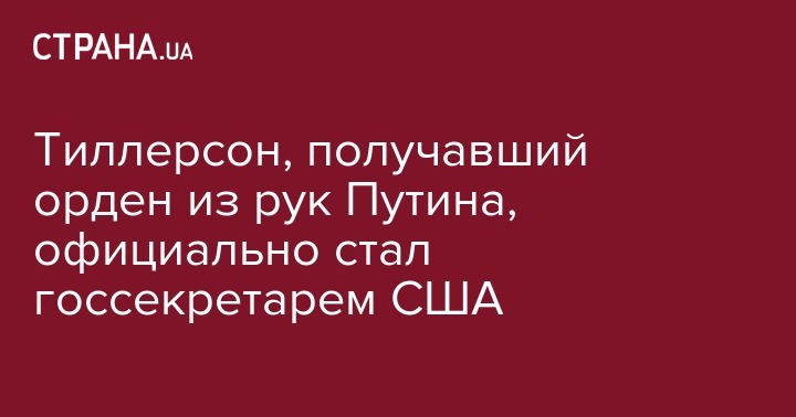 Тиллерсон, получавший орден из рук Путина, официально стал госсекретарем США