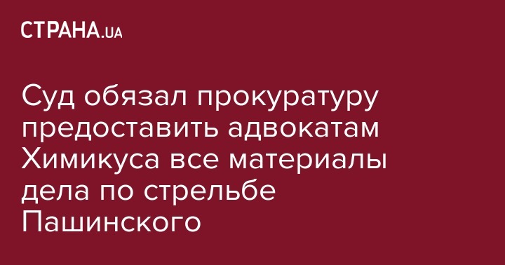 Экс-заместитель Администрации бывшего президента Украины Виктора Януковича и известный юрист Андрей Портнов заявил, что 1 февраля Печерский суд Киева обязал прокуратуру ознакомить адвокатов Химикуса со всеми скрывавшимися материалами дела по стрельбе Пашинского. Об этом Портнов написал в Facebook.