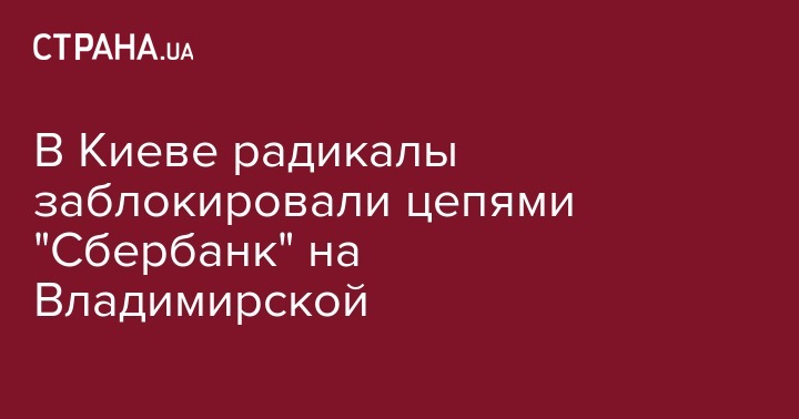 В Киеве радикалы заблокировали цепями "Сбербанк" на Владимирской