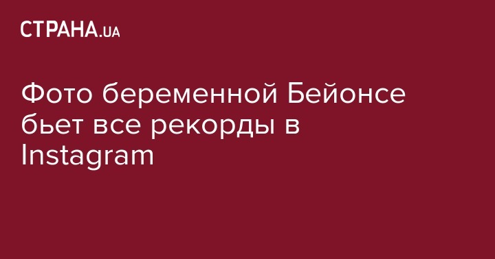 Фотография беременной американской певицы Бейонсе (Beyonce) в Instagram установила рекорд по количеству лайков - фото на фоне цветов в свадебной фате за 21 часов набрало более 8,1 млн лайков, из них 1,4 млн пришлись на первые полчаса после публикации.