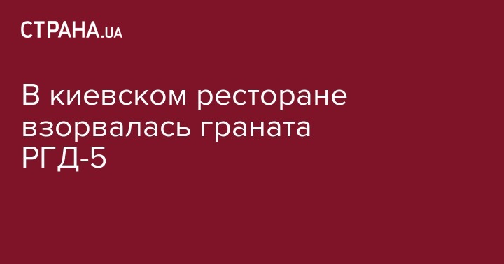 Ночью 3 февраля в Днепровском районе Киева в ресторан бросили гранату РГД-5, которая взорвалась внутри помещения. Об этом сообщает полиция Киева.