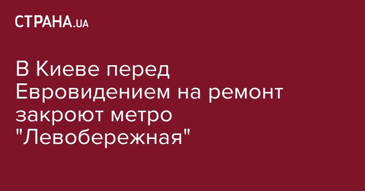 Один из входов киевского метро "Левобережная" с 18 февраля будет закрыт в связи с началом подготовки к "Евровидению". Об этом в эфире "5 канала" сообщил начальник КП "Киевский метрополитен" Виктор Брагинский. На станции будут проводить ремонт.