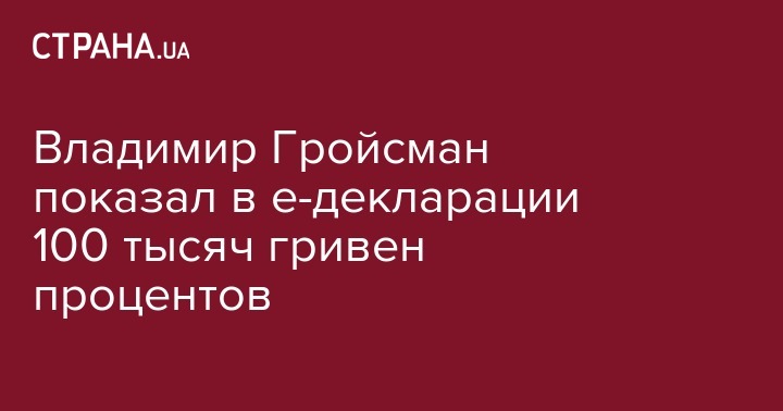 Премьер-министр Украины Владимир Гройсман получил более 100 тыс. грн в виде процентов от депозита в "Ощабданке", говорится в сообщении в Едином государственном реестре деклараций.