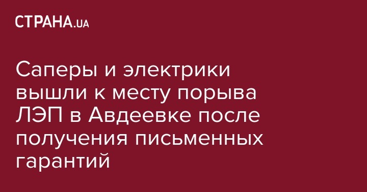 Саперы и электрики вышли к месту порыва ЛЭП в Авдеевке после получения письменных гарантий