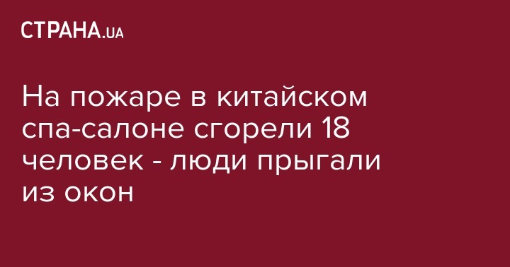В Китае в результате масштабного пожара в спа-салоне погибли по меньшей 18 человек. Об этом в Twitter сообщает Центральное телевидение Китая.