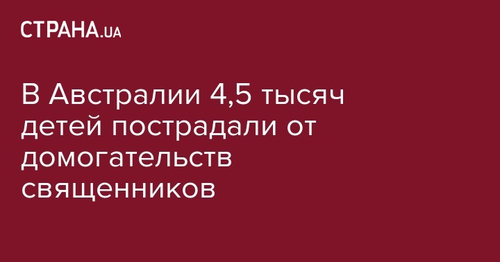 По данным доклада Королевской комиссии Австралии (Australia's Royal Commission) 4,5 тысяч детей в возрасте от 9 до 12 лет стали жертвами домогательств священников католической церкви за последние 35 лет. Об этом сообщает The Guardian.