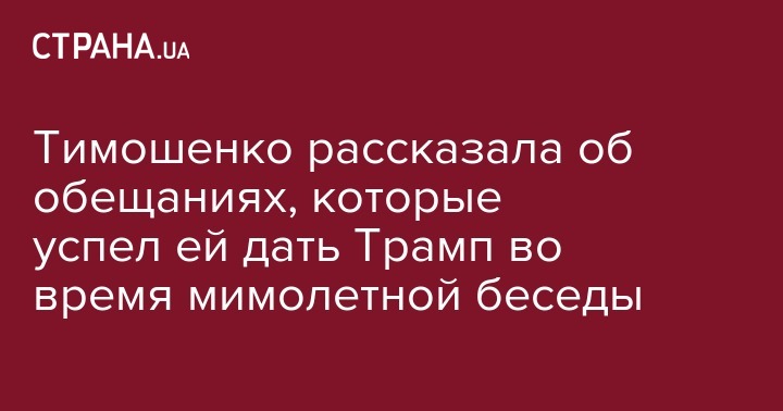 Как сообщала "Страна", в Белом доме подтвердили краткую встречу Трампа и Тимошенко на молитвенном завтраке, однако подчеркнули, что никаких заявлений он на этой встречи не делал, так как это не предусмотрено форматом беседы и статусом ее участников.