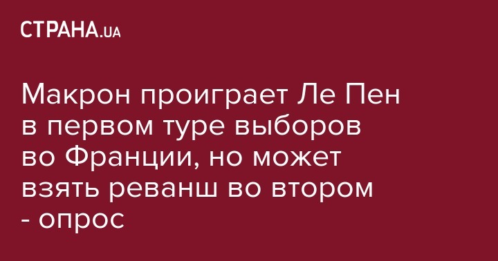 Макрон проиграет Ле Пен в первом туре выборов во Франции, но может взять реванш во втором - опрос